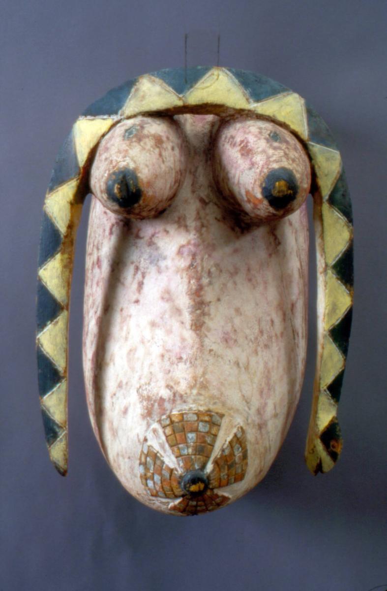 The AMAM's African collection has an important focus on works from Western Africa, particularly those made by the Yoruba people. Executed in a wide range of media-wood, copper alloy, beads, and cowry shells-these objects are used to establish contact between the human world and the spirit world. In addition to this impressive life-size Gelede torso mask that would be worn by a male masquerader, the AMAM collection also includes objects connected with Ifa, the god of divination. Among these are an Ifa Priest's bag, a diviner's satchel, and a divination tray and tapper, all of which support the teaching of religion, history, and culture of West Africa, an area that is particularly strong in Oberlin's curriculum.