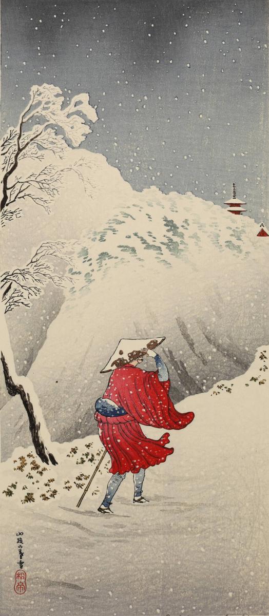Traveler in Snowy Mountains