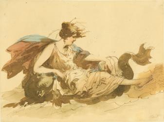 Female Figure Riding a Dolphin; Verso: Study of Seated, Reclining Female and Standing Figure