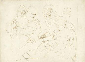 Not on viewThis sketch for an altarpiece depicts the infant Christ with Mary and Joseph, placing a ring on Catherine's finger.