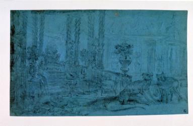 Not on viewThis is one of a series of drawings the artist made for a set of Beauvais tapestries with subjects from the Metamorphoses of Ovid. The prominent large animals, possibly meant to represent dogs or wolves, are a testament both to the artist's interest in depicting animals and also relate to the story of the sorceress Circe, who transformed the wandering Odysseus's companions into beasts.