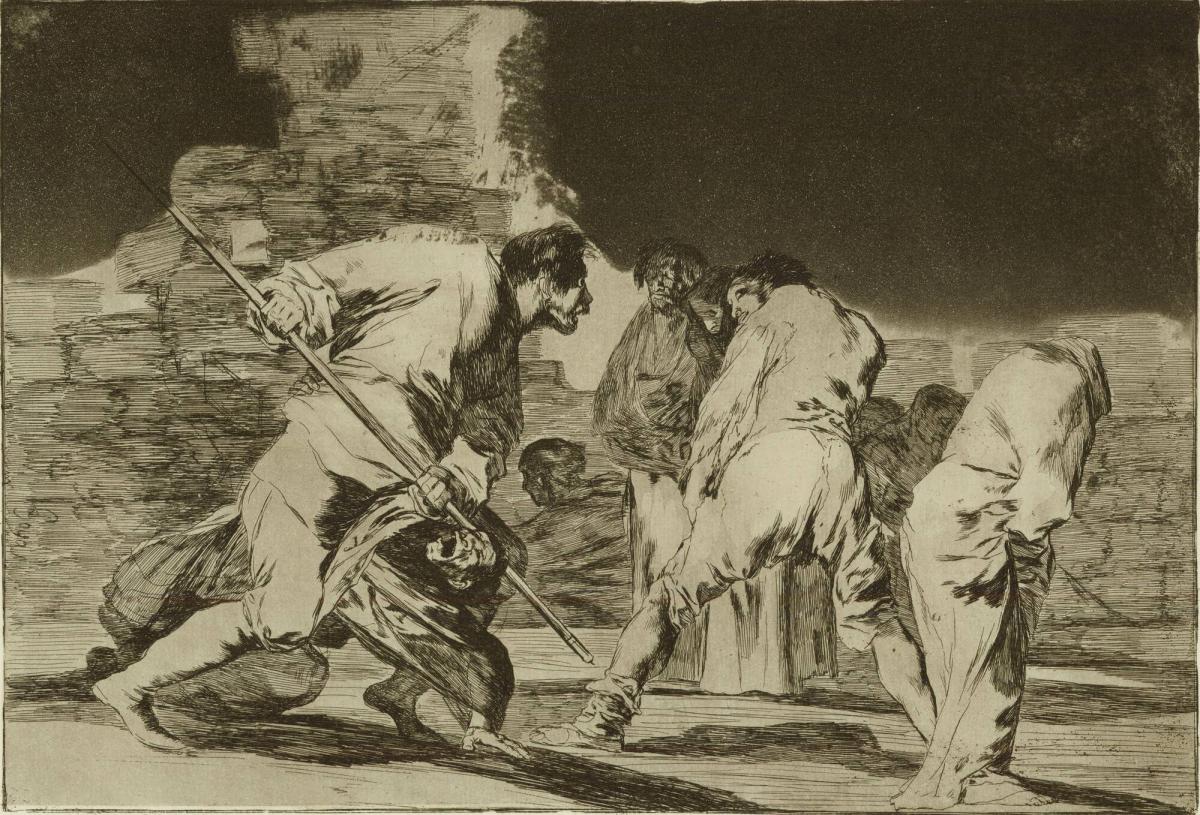 Produced in the wake of the French occupation of Spain and under the absolutist rule of King Ferdinand VII (reigned 1808, 1813–1833), this print might be read in relation to the violence and trauma of the war or to Ferdinand’s repressive regime. However, it is also possible to see it as a more universal critique of a willfully blind society—or, perhaps even worse, a society in which violence and cruelty are accepted with complacency and indifference.