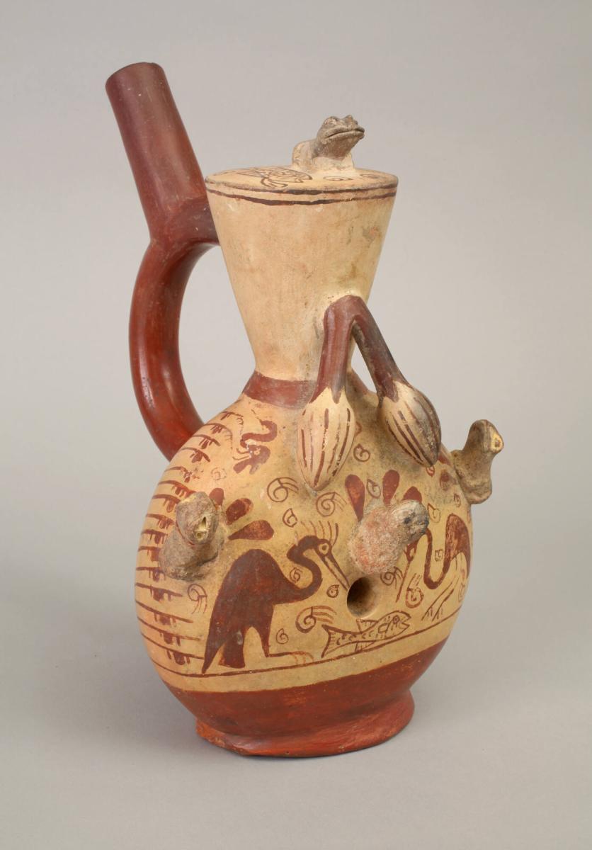 Molded Ewer-form Vessel with Applied Frogs and Cocoa Beans