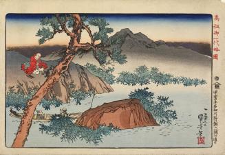 Nichiren Praying for the Repose of the Soul of the Cormorant Fisher at the Isawa River in Kai Province, from the series A Short Pictorial Biography of the Founder of the Nichiren Sect