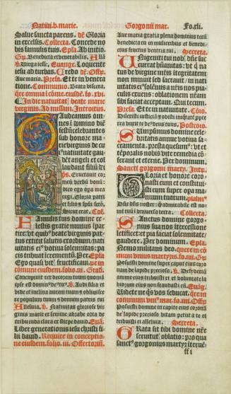 Leaf from Missale Ambrosianum, with the Initial G ("Gaudeamus"): Nativity Scene
