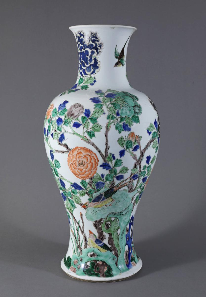 Famille Verte Vase with Design of Peonies, Birds, Rocks and Grasses