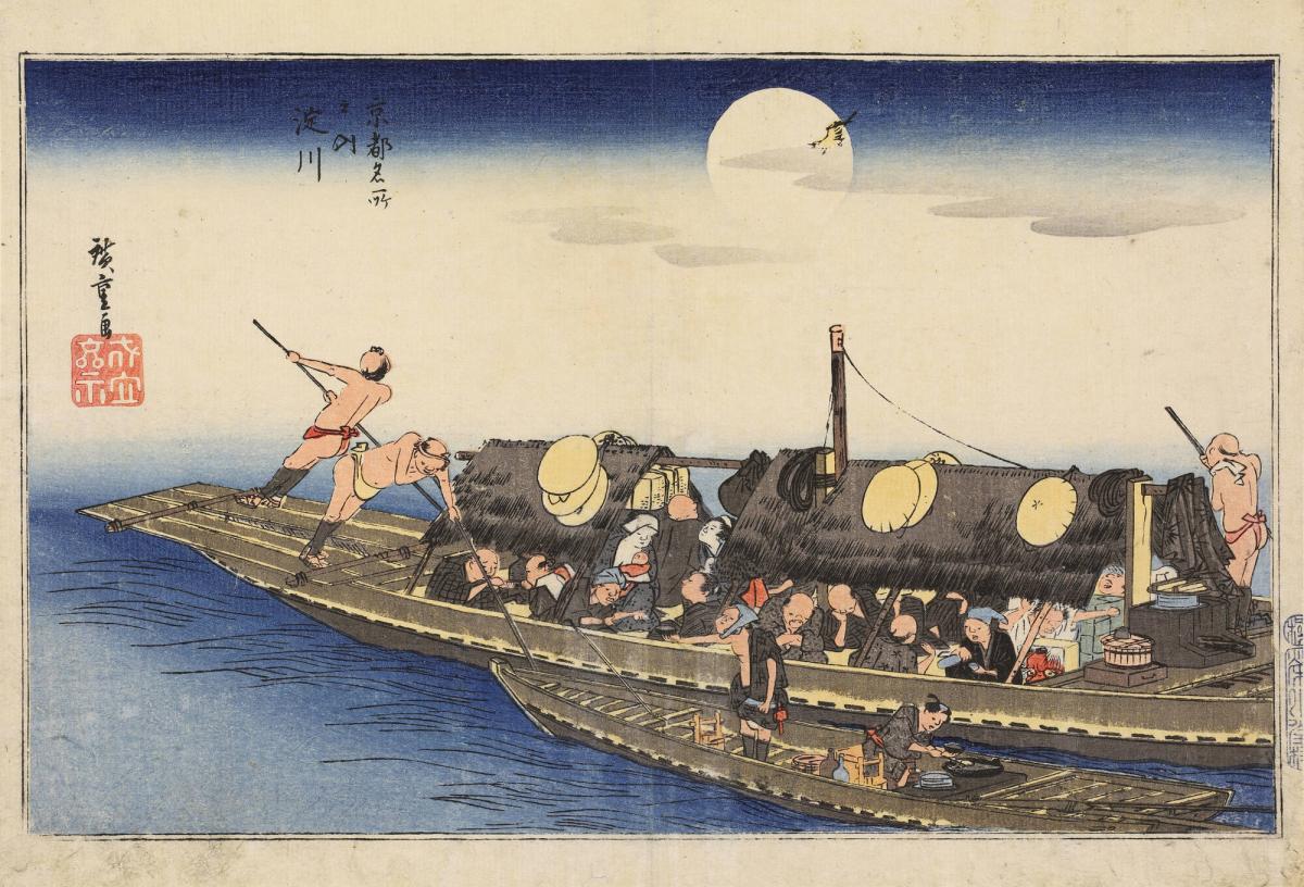 Passenger Boat by Moonlight on the Yodo River, from the series Famous Views of Kyoto
