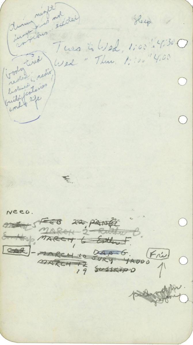 MediumBlue and black ink on unruled notebook paper with six holes punched on left