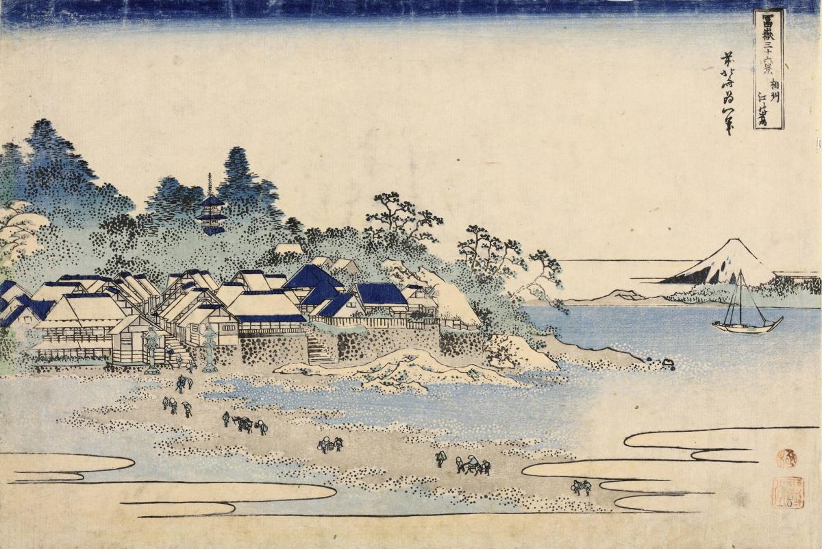 Fuji from Enoshima Island in Sagami Province (Soshu enoshima), from the series Thirty-six Views of Mt. Fuji