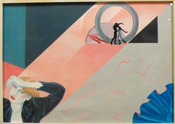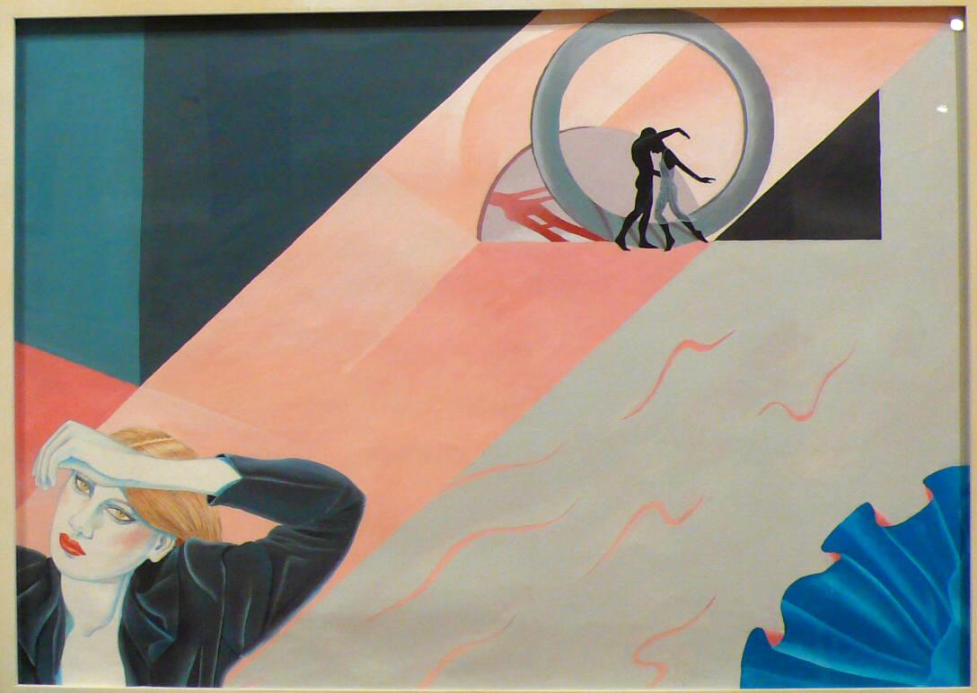 Not on viewThe medium of dance is important in Skuodas’s work. Here, the small male and female figures in the background gracefully connect, their shadows thrown in a color and shape that evokes arteries, while a female figure and a billowing silky cloth reminiscent of a scallop shell anchor the paintings’ corners. In commenting on the importance in her work of the force of the laws of nature on human beings, Skuodas wrote, “Even in my earlier work, which was more figuratively representative, the figures were encased within geometric constructs; not as purely mathematical or decorative effect but as embracingly and evocatively symbolic.”