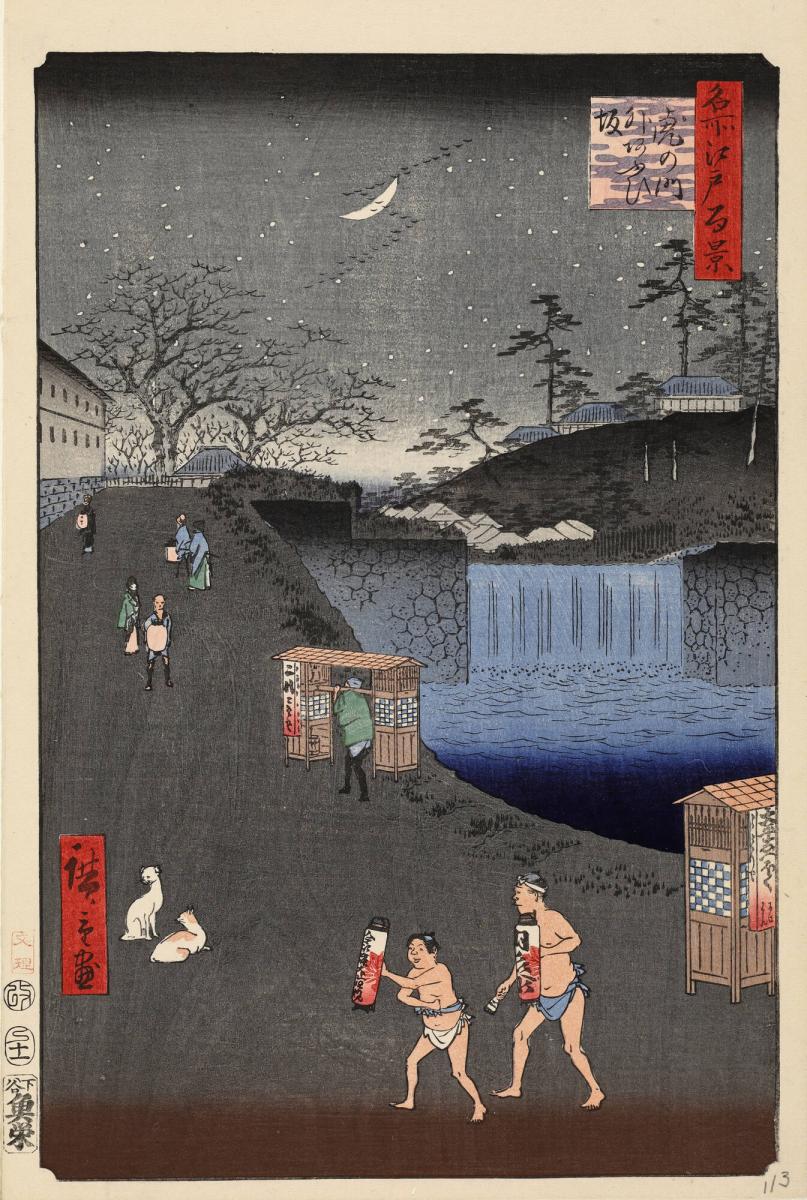 Aoi Slope, Outside Tora Gate (Toranomon-soto Aoizaka) from the series One Hundred Famous Views of Edo (Meisho Edo hyakkei)