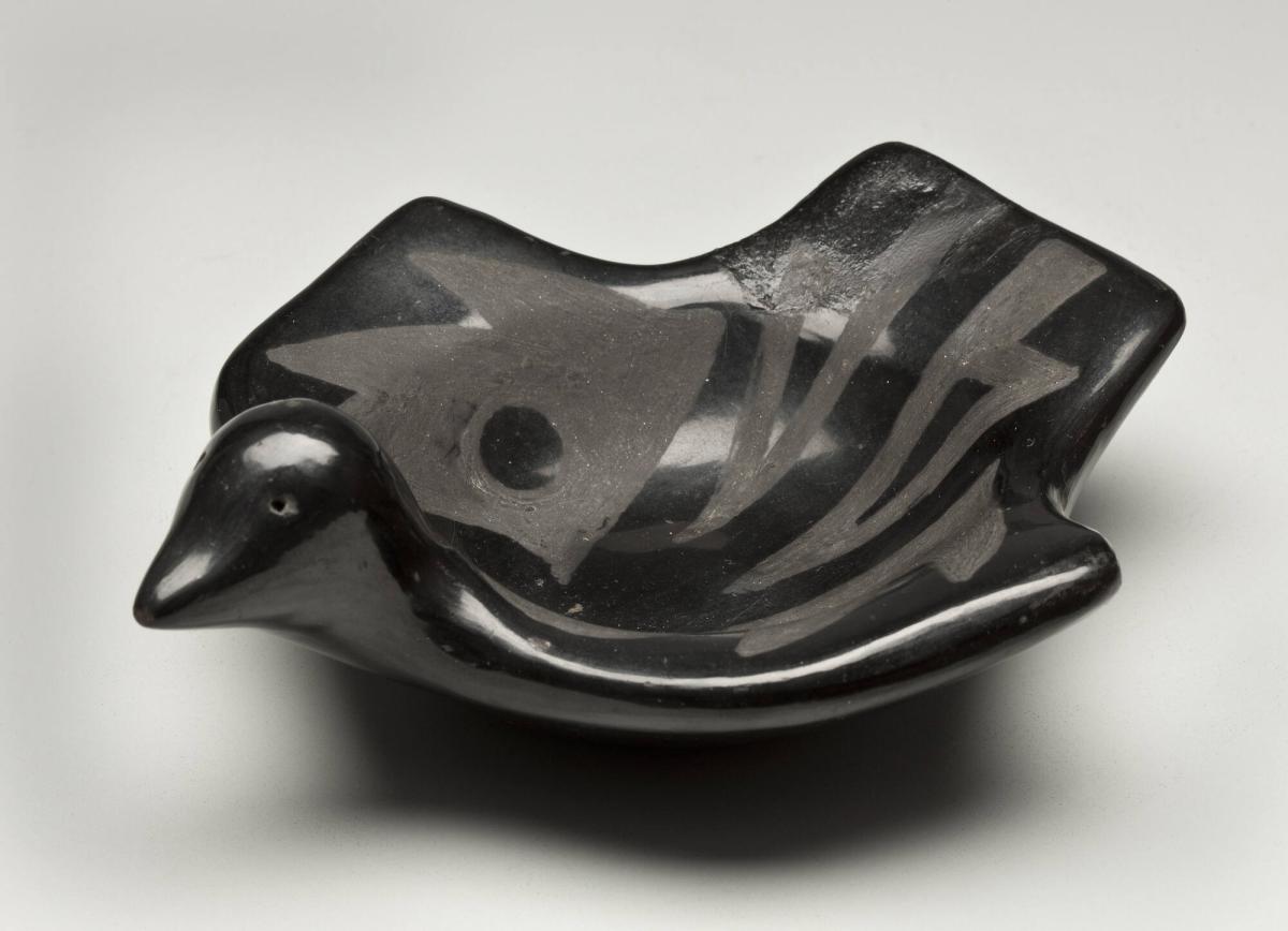 Black-on-Black Shallow Bowl in the Shape of a Bird