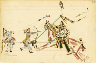 Not on viewThe nineteenth-century Plains Indian artist Howling Wolf documented the life of his Southern Cheyenne people through colorful and detailed drawings. A total of fifty seven powerful images, all probably made between 1874 and 1875, comprise the gift the AMAM received in 1904. Because they were made on lined ledger paper used by accountants, drawings of this type are called ledger drawings. Howling Wolf drew a variety of historic scenes that often occurred as long as ten years or more before their depiction, and the drawings in the ledger are not in chronological order. The history, meaning, and importance of Oberlin's ledger drawings have been fully described by scholar Joyce M. Szabo.