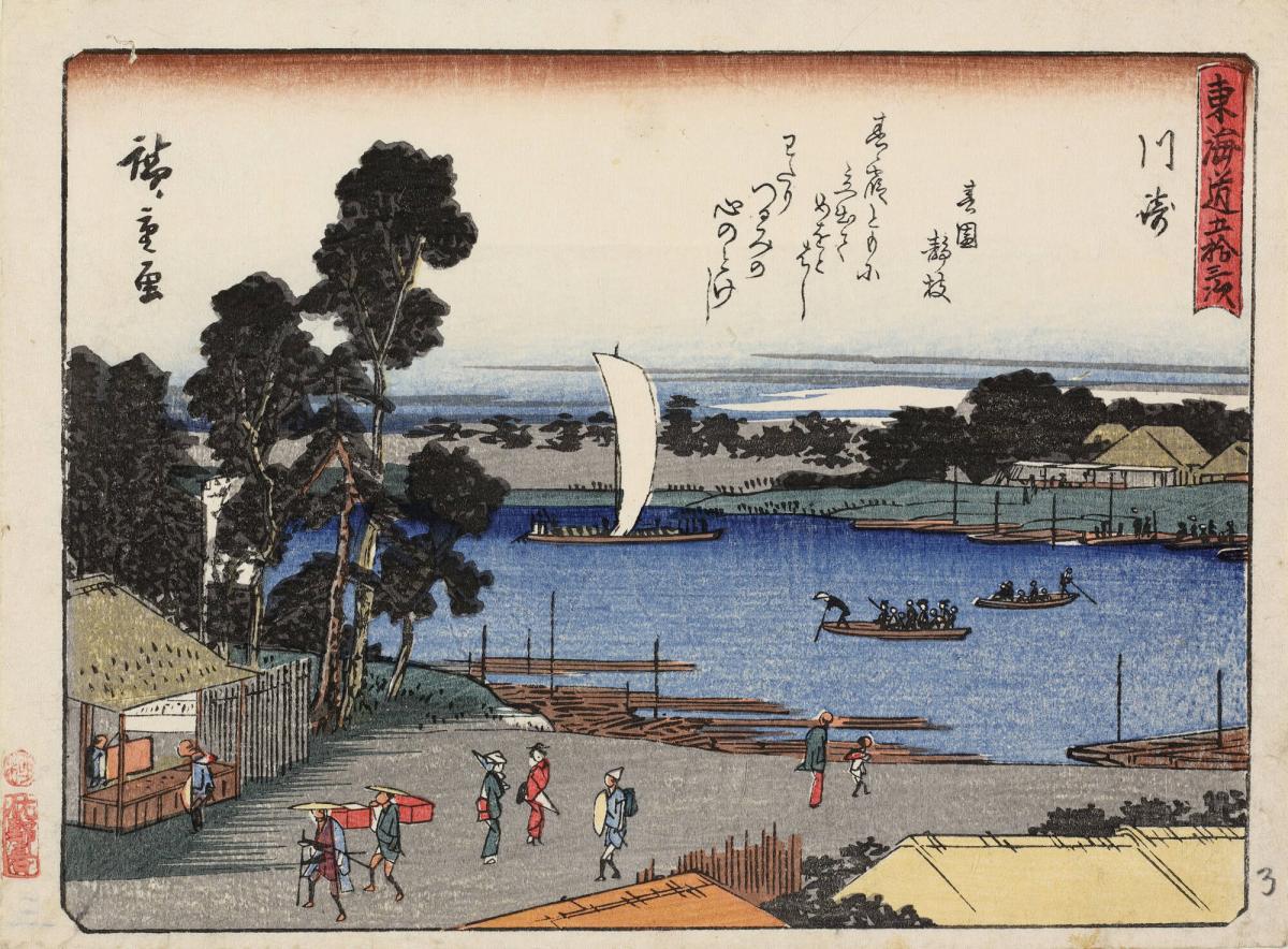 Kawasaki, with a Poem by Haruzono Shizuki, no. 3 from the series The Fifty-three Stations of the Tōkaidō