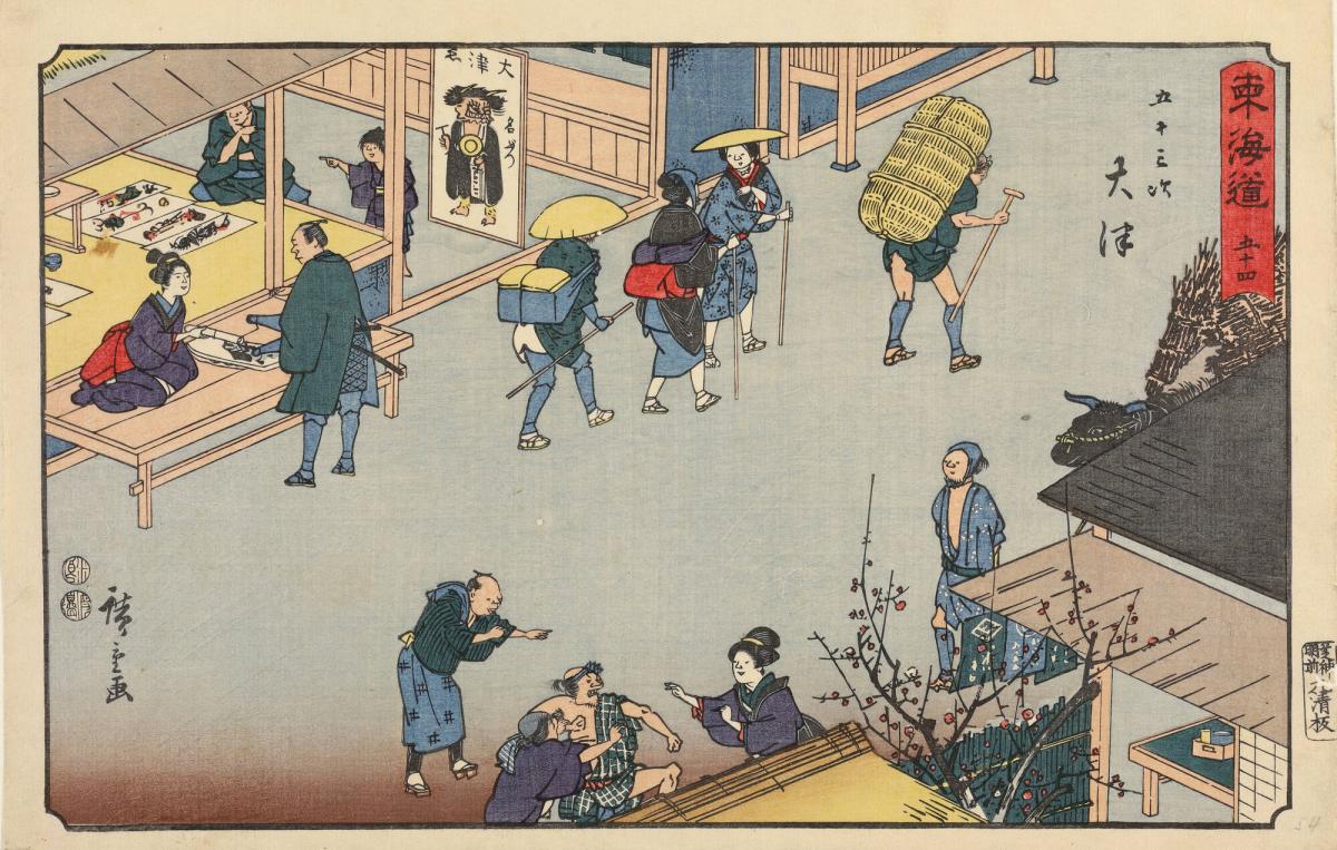 Shop Selling Religious Folk-paintings at Otsu, no. 54 from the series The Fifty-three Stations of the Tōkaidō, also called the Reisho Tōkaidō