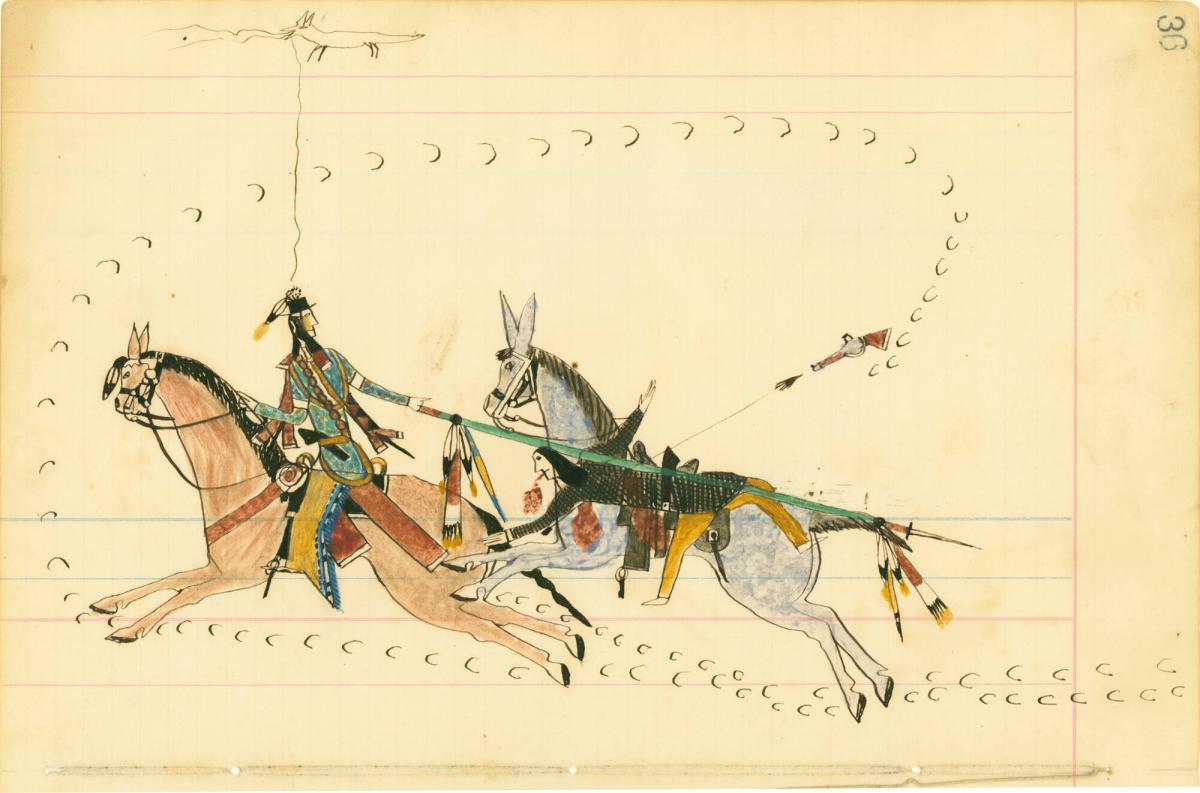 Portfolio[Szabo title, p. 38: "Howling Wolf has already used his riding quirt to count coup on the fallen man while a warrior-artist continues to battle additional enemies in front of him."; p. 36: "Having already fired his gun at his enemy, Howling Wolf now lances him"]