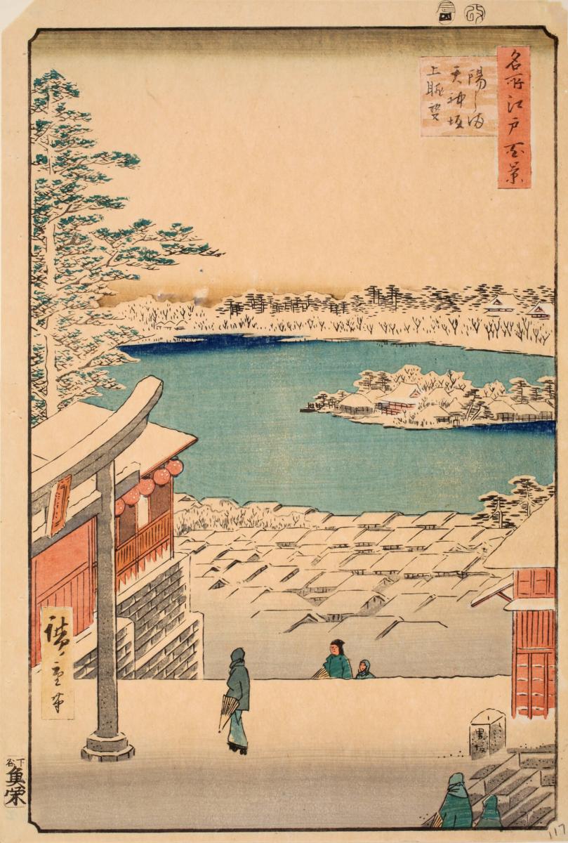 Hilltop View, Yushima Tenjin Shrine (Yushima Tenjin sakaue tenbō), from the series One Hundred Famous Views of Edo (Meisho Edo hyakkei)