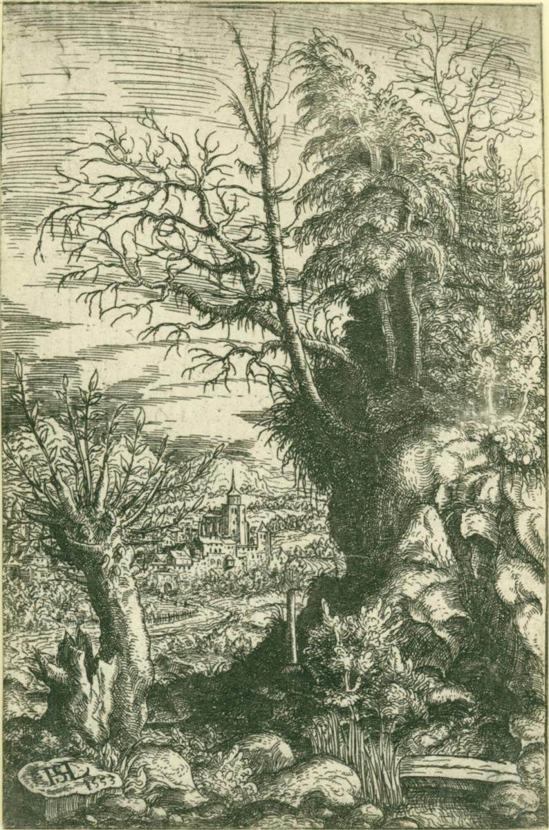 Not on viewKnown for both topographical views and portraits, Lautensack also created fanciful landscapes that are less about the observed details of nature than about one’s emotional response to the idea of nature. Lautensack deftly wields the etching needle, creating exaggerated forms and artfully constructed vistas that encourage the viewer to follow him into his world of a believable but completely invented landscape.