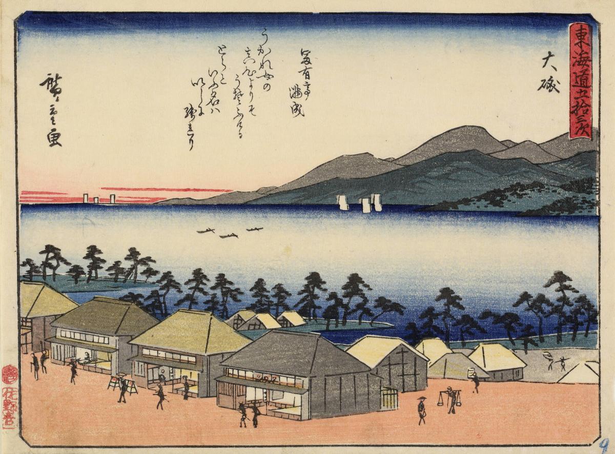 Oiso, with a Poem by Fuyutei Mitsunari, no. 9 from the series The Fifty-three Stations of the Tōkaidō
