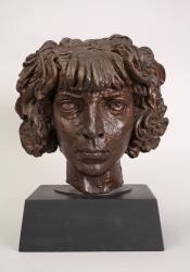 Not on viewThe Marchesa Luisa Casati (1881-1957), famous for her beauty, wealth, and eccentricity, lived in Paris, Venice and Capri. By 1900, she had become Italy's wealthiest heiress; but a life of excess found her living her final days in poverty in London. Epstein first met the Marchesa at a luncheon and asked her to sit for him, which she consented to do the next day. Later recalling the sitting, which began at two o'clock and continued into the night, the sculptor wrote: "The winter light had failed, and I had many candles brought in. They formed a circle round my weird sitter . . . The tireless Marchesa, with her over-large blood-veined eyes, sat with a basilisk stare . . . The Medusa-like mask was finished the next day."