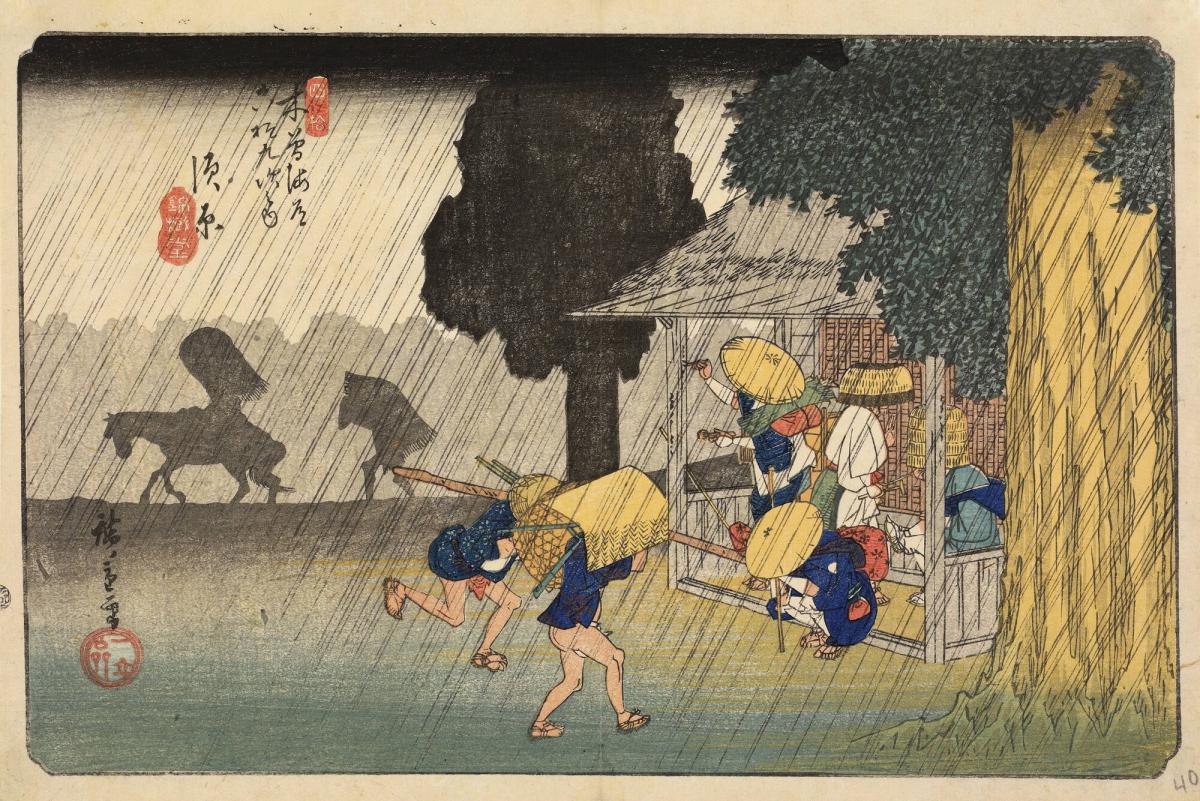 Rain at Suhara, no. 40 from the series Sixty-nine Stations on the Kisokaidō