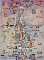 Not on viewRanging from the Cuban Baroque to Art Deco, the eclectic architecture of Old Havana served as a source of artistic inspiration for René Portocarrero. Made at the height of his most abstract period, Señales No. 2 features black, crisscrossed lines that evoke wrought-iron gates and lattices, while planes of color suggest stained glass windows. Known for his vibrant use of color, here Portocarrero mutes his palette with tempera washes in green, brown, and blue, accented by areas of highly saturated lemon yellow and earthy red.