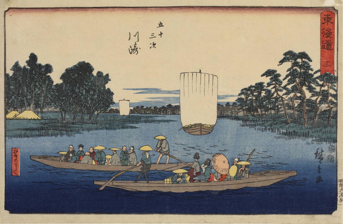 The Rokugo Ferry at Kawasaki, no. 3 from the series The Fifty-three Stations of the Tōkaidō, also called the Reisho Tōkaidō