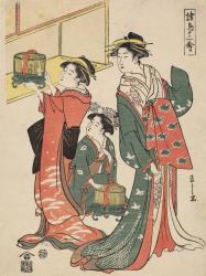 Courtesan and Attendants with Two Caged Quail, from the series Twelve Birds