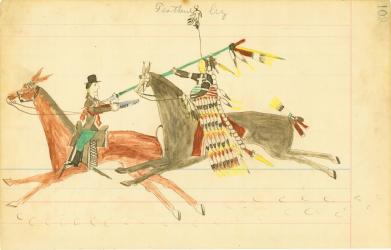 116. "'Mah nim ik,' Eagle Head"; 115. Soldier in Cart Firing Gun; 101. [blank page]; 102. "Feathered Leg."