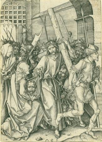 Working in the Rhineland during the latter half of the 15th century, Martin Schongauer was a leading figure in the development of printmaking in Northern Europe. He is especially well-known today for his developments in modeling and shading, but his skill did not go unnoticed by his contemporaries. As a young artist, Dürer had traveled to Schongauer's workshop with the intention of working with the artist, but Schongauer had died by the time he arrived. Even after his death, Schongauer's prints remained greatly influential, often inspiring the works of subsequent printmakers. The theme of Christ's Passion appears often in Schongauer's 116 known engravings, the majority of which were devoted to religious subjects. This print comes from a Passion cycle that begins with Christ's Agony in the Garden and concludes with his Resurrection. Many scholars believe that this cycle was completed in chronological order, and thus charts the evolution of Schongauer's engraving style.