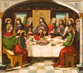 On viewThe picture was first attributed to the hand or close circle of the Spanish painter, Juan de Borgoña, who was active in Toledo and Avila during the early sixteenth century. More recently it has been accepted by scholars as the work of the Castillian painter known as the Portillo Master. The large panel is composed of six rough hewn boards about ten inches in width, except for the bottom member which is about five inches wide, assembled horizontally.
