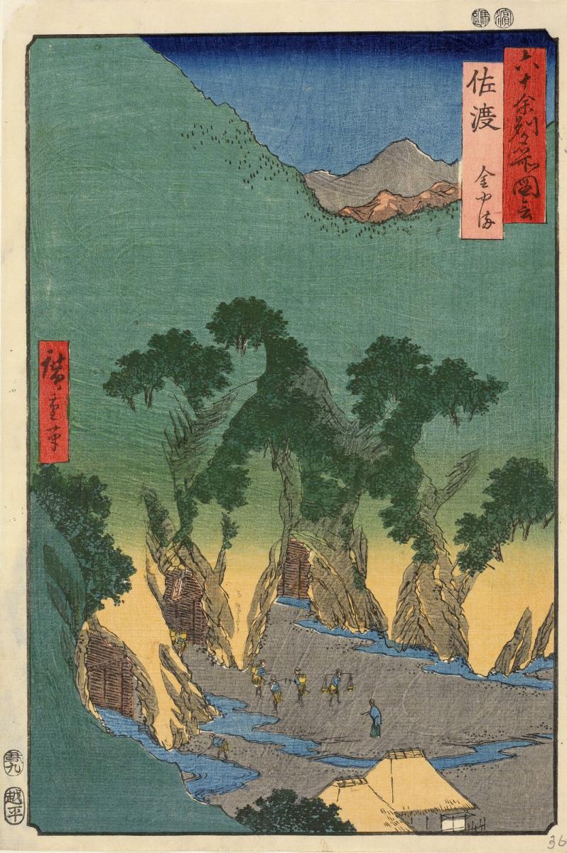 Entrance to the Gold Mines at Kanayama in Sado Province, no. 36 from the series Pictures of Famous Places in the Sixty-odd Provinces