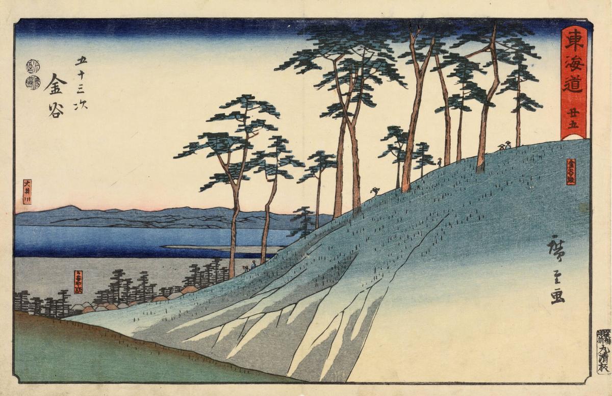 Distant View of the Oi River from the Slope Leading to Kanaya, no. 25 from the series The Fifty-three Stations of the Tōkaidō, also called the Reisho Tōkaidō