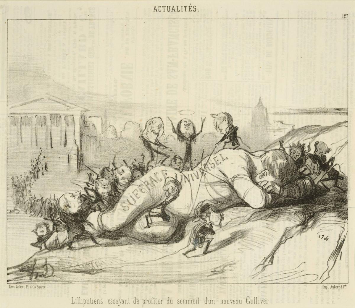 Lilliputiens essayant du profiter du sommeil d'un nouveau Gulliver (Lilliputians Trying to Take Advantage of the Sleep of a New Gulliver), from the series Les Actualités