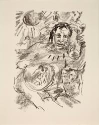 Not on viewIn 1963, Austrian painter Oskar Kokoschka created a series of 16 lithographs to illustrate William Shakespeare’s King Lear. One of the Bard’s most highly-regarded tragedies, the play follows the elderly King Lear’s descent into madness after foolishly dividing his estate among two of his three daughters based on their false flattery, resulting in a tragic outcome for all. Kokoschka’s series depicts critical points in the narrative which often correspond to dialogue by Lear and his daughters Goneril, Regan, and Cordelia, in addition to that of the other characters vying for the throne. Providing minimal information about the setting of each scene, Kokoschka’s sketchy compositions instead focus on the characters, each depicted with the artist’s characteristic energetic expressionism.