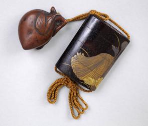 MediumBlack and gold lacquer (inro) and wood (netsuke)