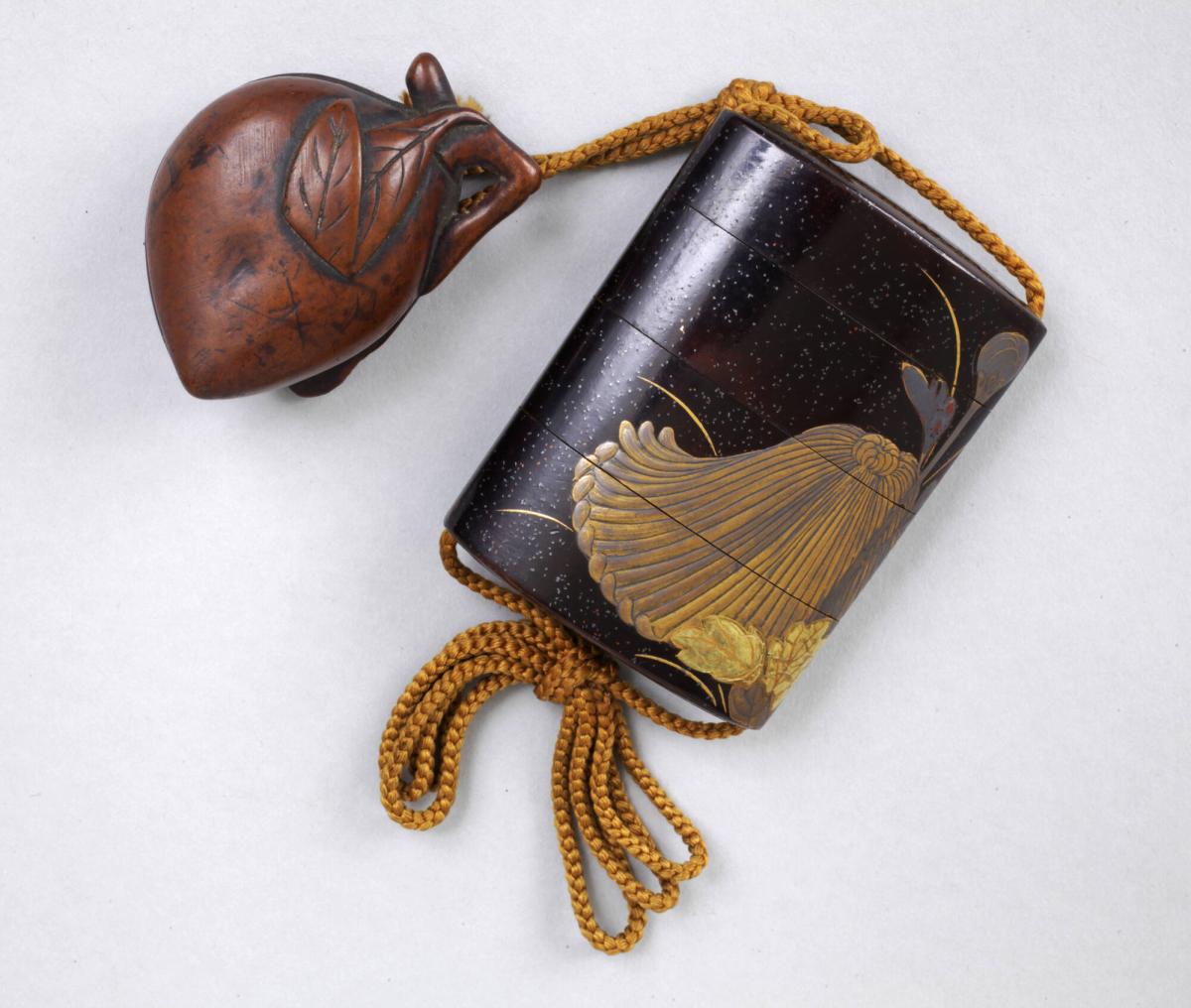 Inro with Gold Design, and Netsuke in the Form of a Peach