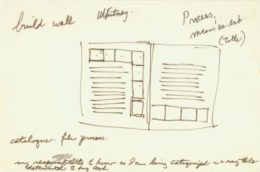 Not on viewThis is a sketch for the exhibition Anti-Illusion: Procedures / Materials, on view at the Whitney Museum of American Art, New York, May 19–July 6, 1969. The exhibition included Hesse’s sculptures Expanded Expansion, Vinculum I, and Untitled (Ice Piece), all from 1969, but Hesse’s contributions did not conform to this draft layout.