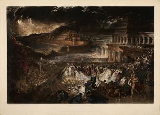 Not on viewThis works depicts Martin’s tumultuous imaginings of Old Testament biblical scenes of catastrophe, a popular theme for the 19th-century Romantic movement. Martin was particularly interested in illustrating the origins of the world through acts of human vengeance and divine wrath. The drama of these scenes is enhanced by their coloration, but it is not known whether Martin applied the color himself.