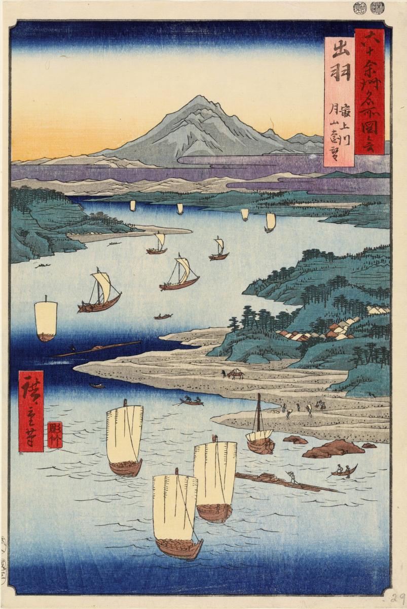 Distant View of Moon Mountain from the Mogami River in Dewa Province, no. 29 from the series Pictures of Famous Places in the Sixty-odd Provinces