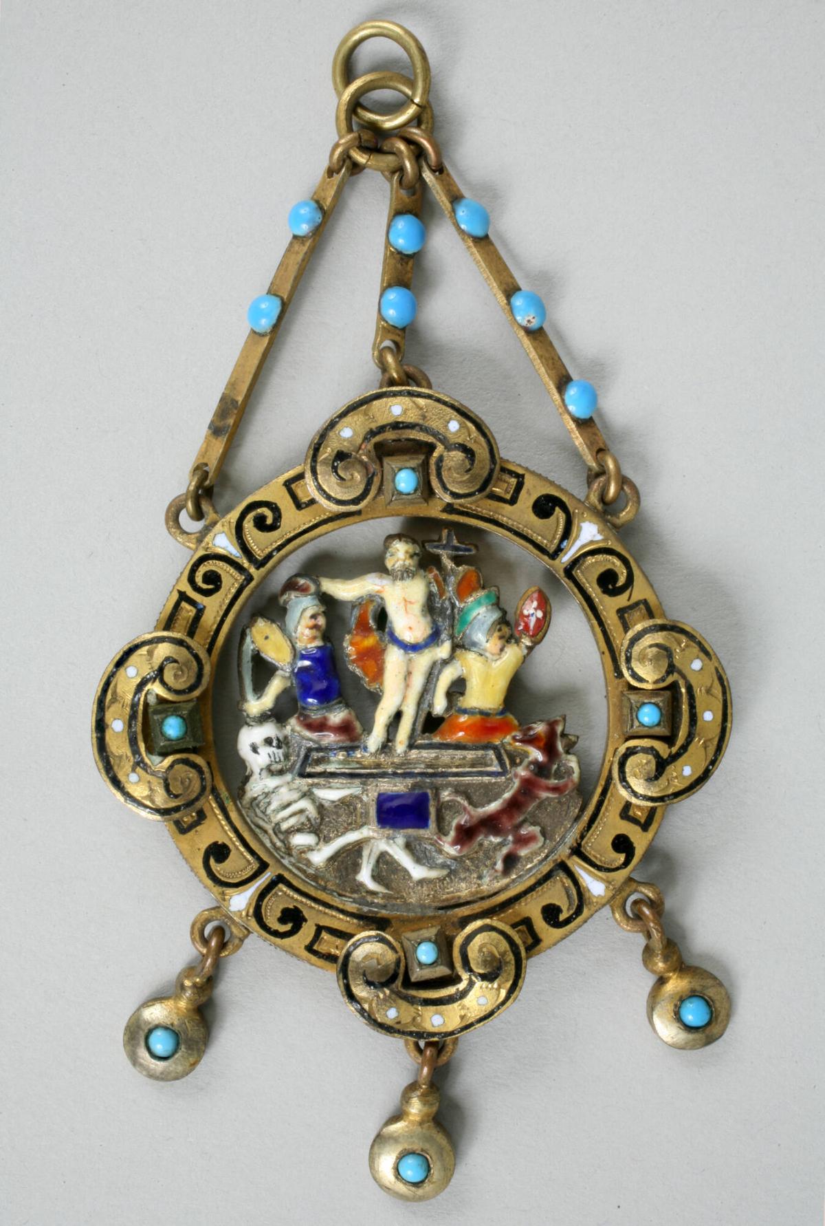 Badge of Honor Depicting Christ and Angels Above, Skeleton and Demon Below