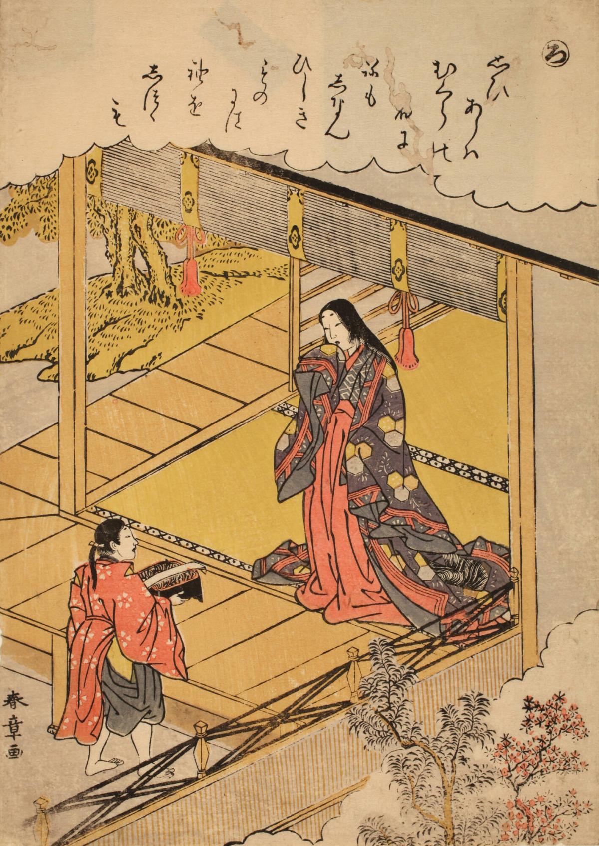 Attendant Presenting Letter to a Court Lady, no. 2 from an untitled series of illustrations from Tales of Ise