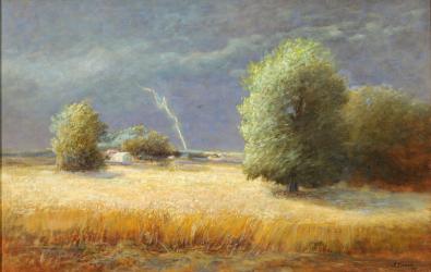Not on viewActive primarily in the Cleveland area, Semon was noted for his lyrical, idealized autumn scenes. Rolling fields of ripened grain symbolize the infinity and abundance of the Midwestern prairies.