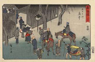 Travellers Arriving by Night at Fuchu, no. 20 from the series The Fifty-three Stations of the Tōkaidō, also called the Reisho Tōkaidō