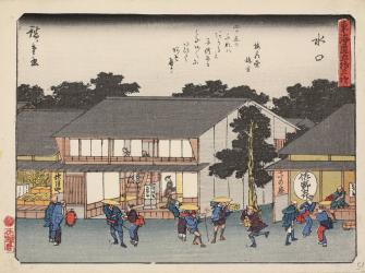 Inn at Minakuchi, with a Poem by Baikado Nerikata, no. 51 from the series The Fifty-three Stations of the Tōkaidō