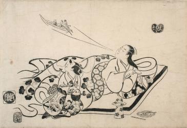 Rinreiso, Courtesan Creating an Image of Her Approaching Lover in Cloud of Winedrops, a Parody of the Daoist Immortal Lin Lingsu, from untitled series of parodies of classical or traditional themes