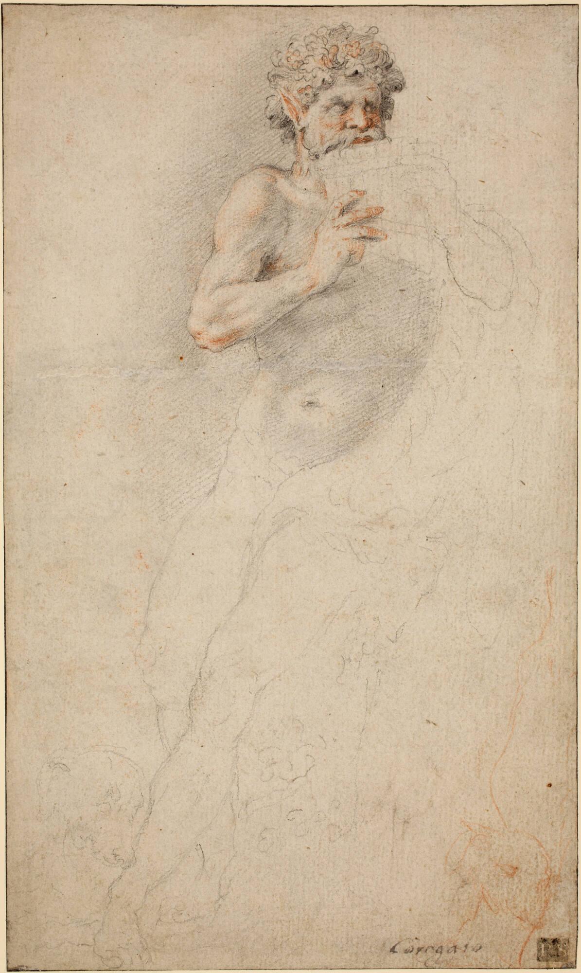 Not on viewThe drawing may be based on a figure in an antique sculptural relief of bacchic scenes in the Villa Borghese, Rome.