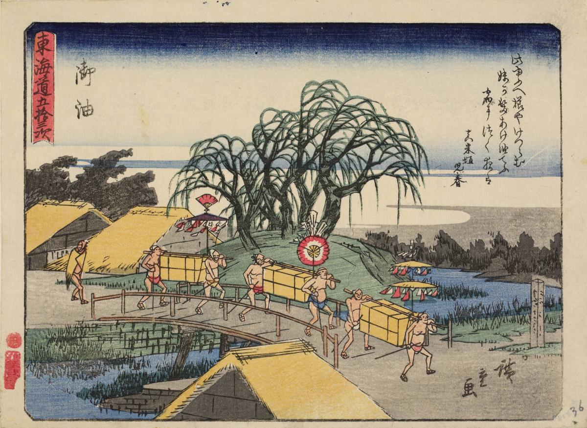 Porters at Goyu, with a Poem by Magomegaki Koharu, no. 36 from the series The Fifty-three Stations of the Tōkaidō