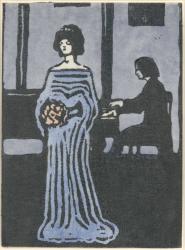 Not on viewThe Singer's flowing lines and muted colors suggest the early Symbolist and Jugendstil tendencies of Kandinsky's early work in Munich. During this period, Kandinsky's work began to develop and strengthen into the abstracted style he is known for today, nearly a decade before his close collaboration with Franz Marc and Paul Klee in the Blaue Reiter group. Kandinsky was captivated with the woodcut technique, claiming that this medium synthesized elements of music, poetry, and the fine arts. He saw working with woodcuts as crucial to the development of his painting, and thus an important introduction to his later abstractions.