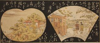 Not on viewThe city of Edo, as Japan’s major producer of woodblock printing, naturally developed its own “Eight Views” series featuring local landmarks. This unusual double print shows two. Kinryūzan, on the right, was Edo’s oldest Buddhist temple. Atago Hill, shown in the moonlight, was named after a sacred hill site in Kyoto. Both Atago Hills have shrines for the Shinto deity who protected against fires.
